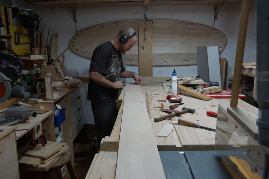 The center rocker of your windsurfboard is made out of 6mm poplar. A light weight wood as Paulownia, but not as stated here, as water insensitiv as Paulownia. The advantage of using poplar is, that you can get it as a multiplex plate.